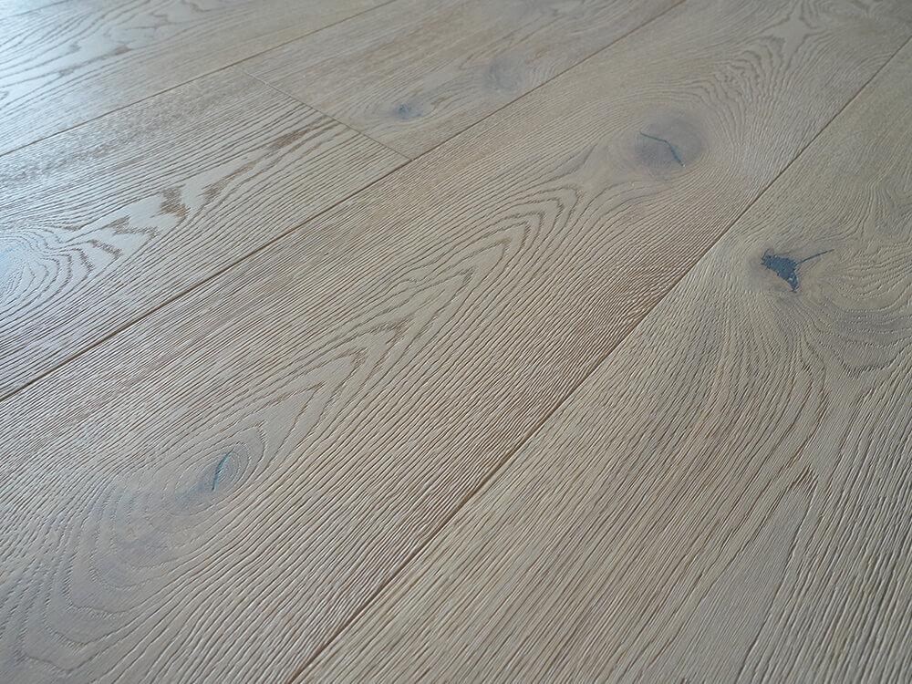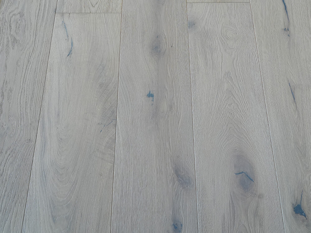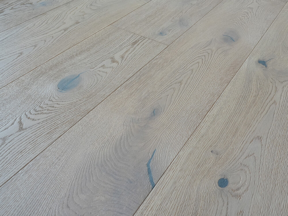 Startseite » Shop » Parkett Eiche XL „Mammut“ Rustikal, weiß naturgeölt, tief gebürstet, schwarz gespachtelt