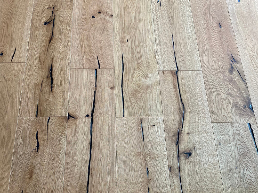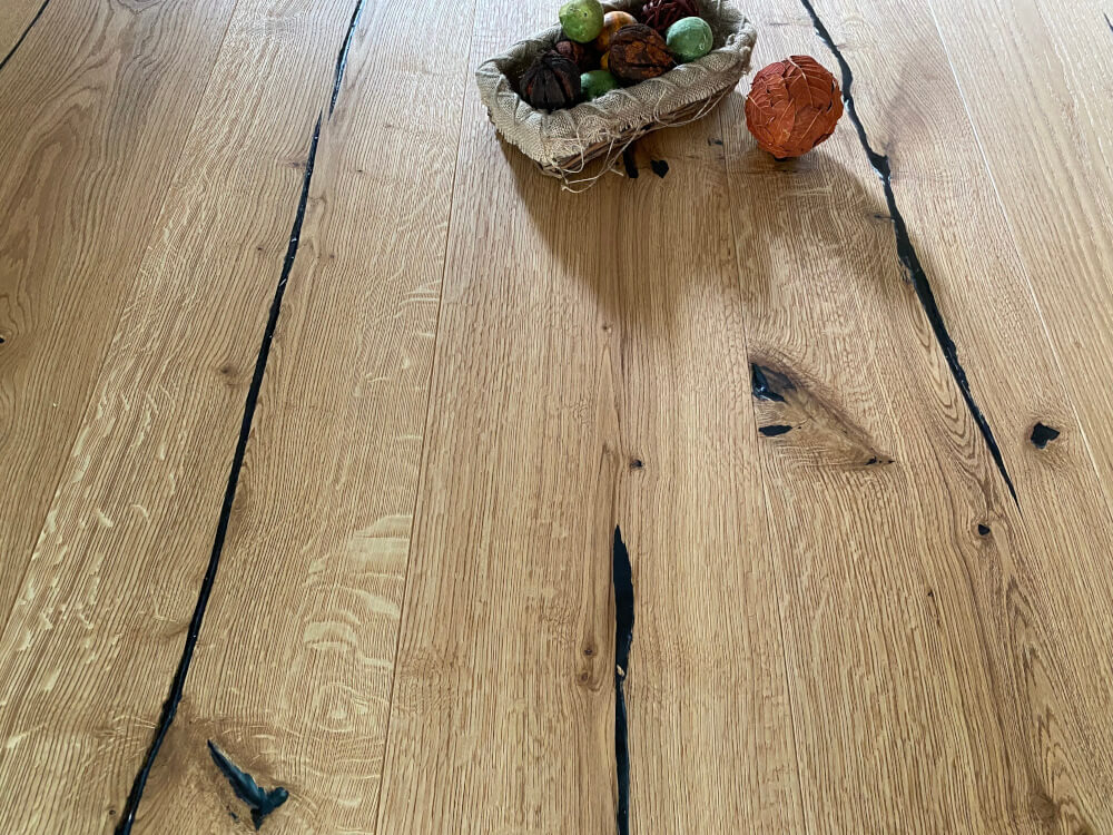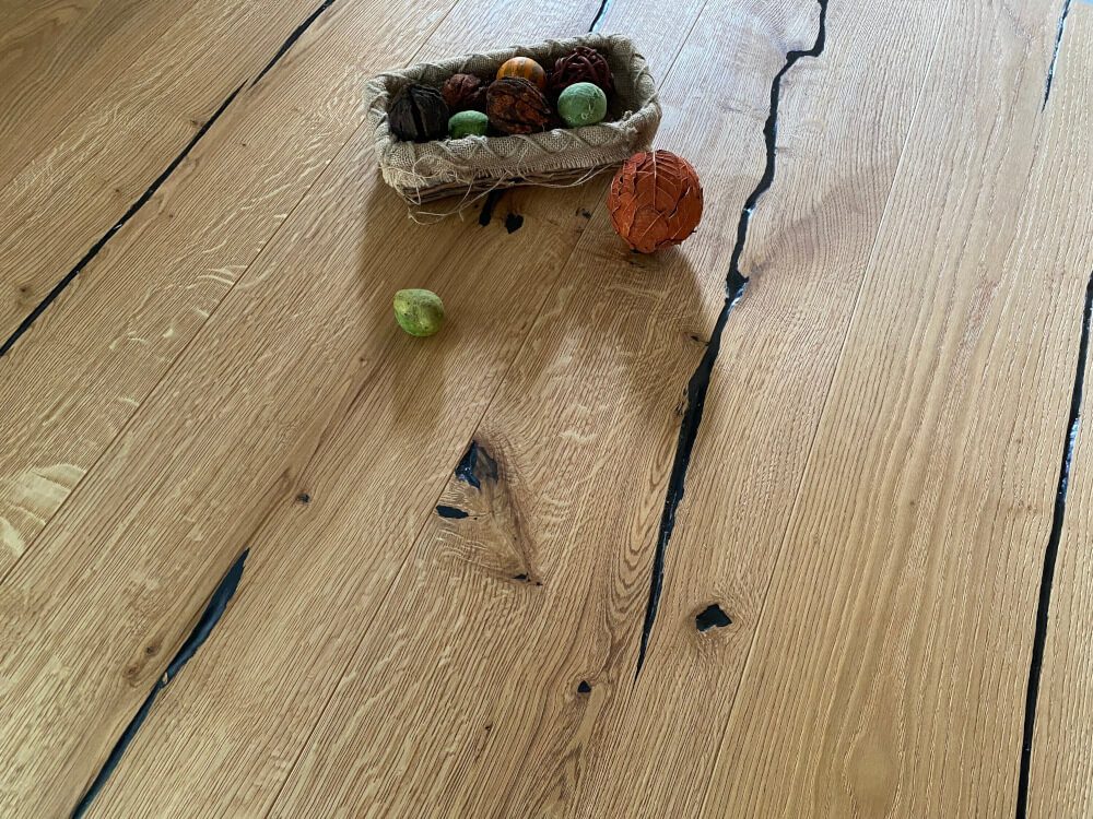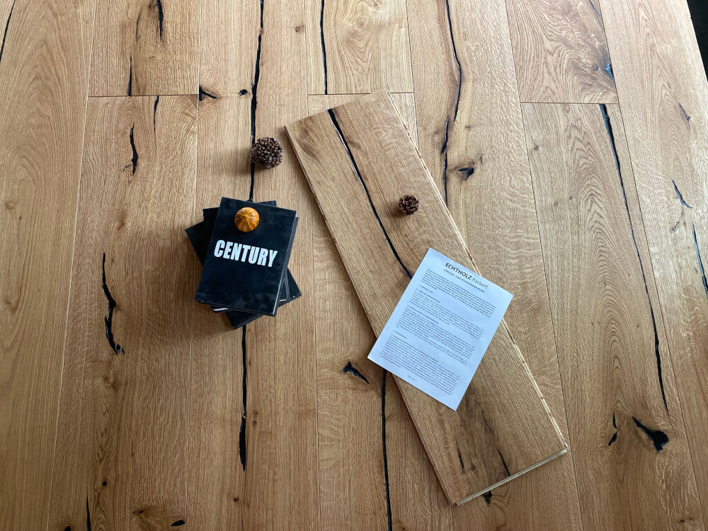 Startseite » Shop » Parkett Eiche XL „Vintage“ Rustikal, naturgeölt, stark gebürstet, schwarz & halb gefüllt