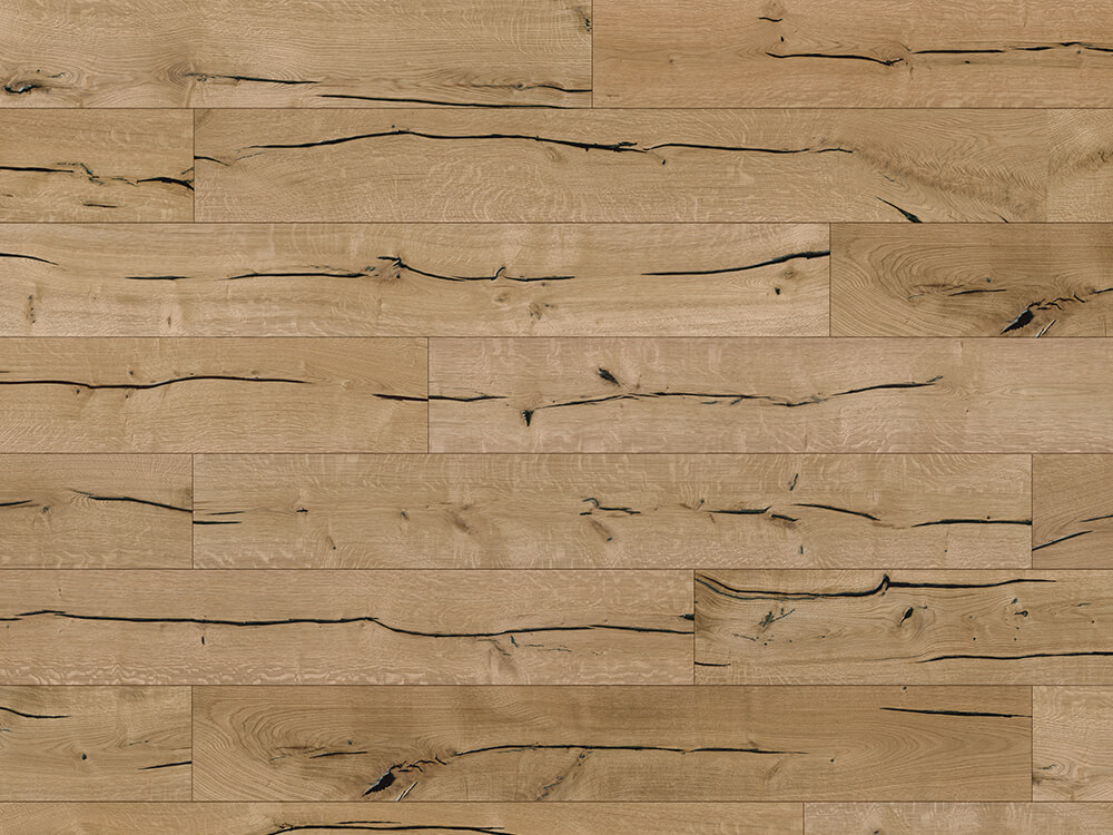 Beschreibung: Parkett Eiche XL „Vintage“ Rustikal, naturgeölt, stark gebürstet, schwarz & halb gefüllt