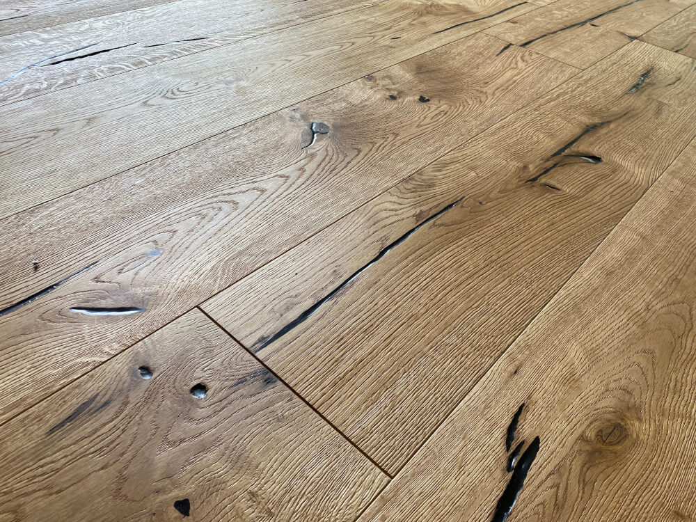 Parkett Eiche XL „Vintage“ Rustikal, naturgeölt, stark gebürstet, schwarz & halb gefüllt