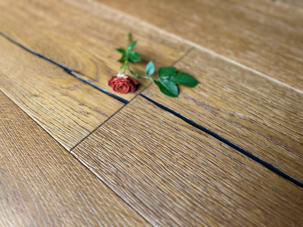 Parkett Eiche „Tradition“ Markant, invisible geölt, gebürstet, schwarz gepachtelt